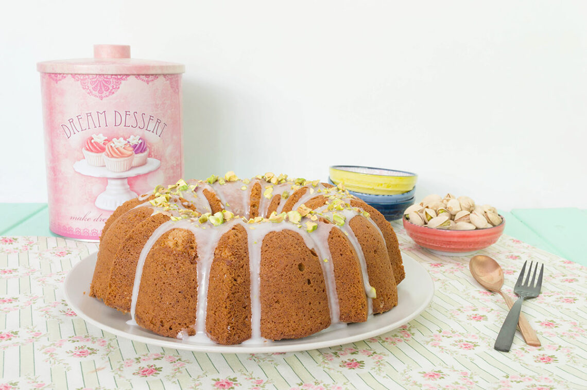Hoy traigo una receta que ha triunfado en casa. Un bundt cake de pistachos. En casa somos fans de los frutos secos y últimamente de los pistachos.