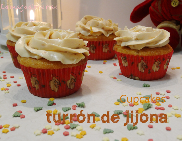 Otros años compraba turrones y polvorones pero siempre acaban quedando y a finales de enero aún quedaba algo. Así que este año decidí preparar para el día de Navidad unos cupcakes de turrón de jijona. Siguen teniendo turrón y no llenan mucho.