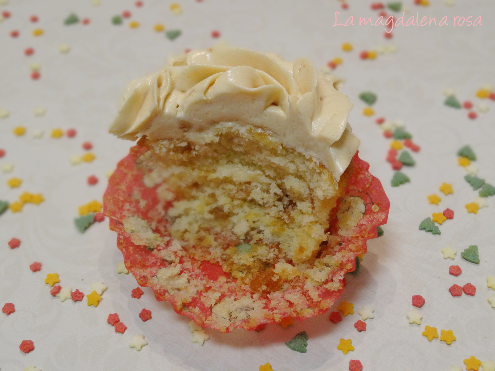 Otros años compraba turrones y polvorones pero siempre acaban quedando y a finales de enero aún quedaba algo. Así que este año decidí preparar para el día de Navidad unos cupcakes de turrón de jijona. Siguen teniendo turrón y no llenan mucho.