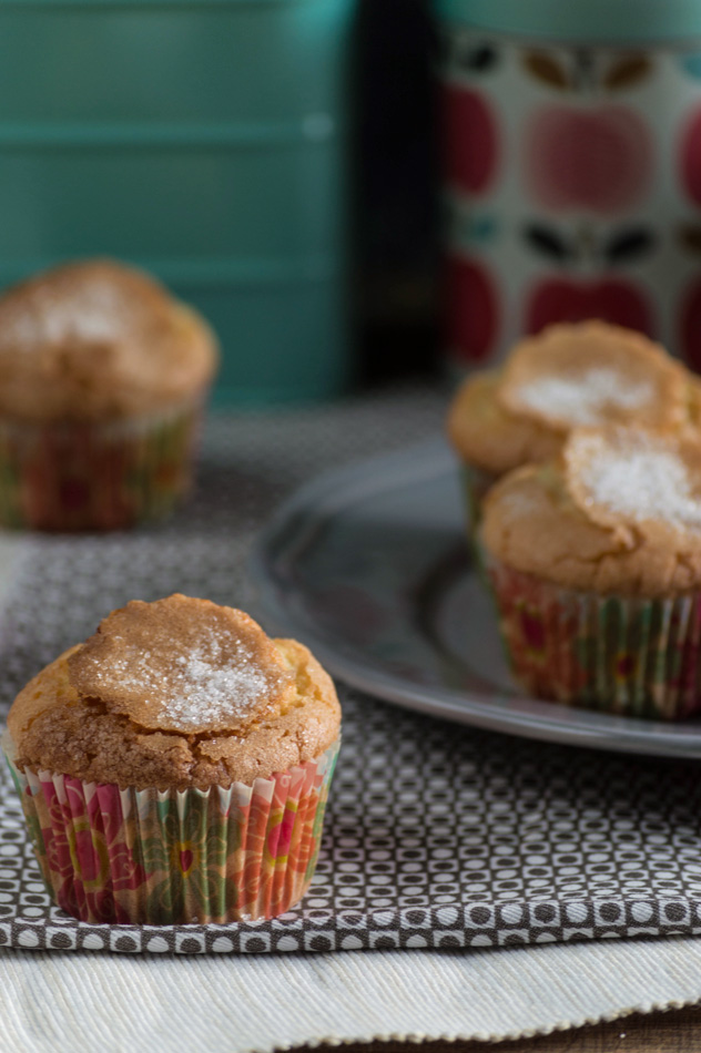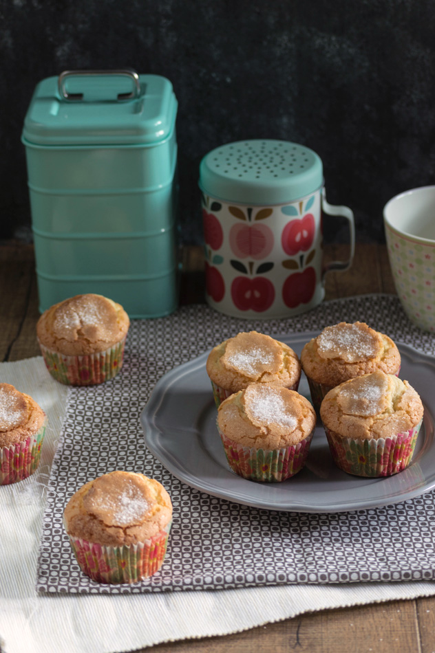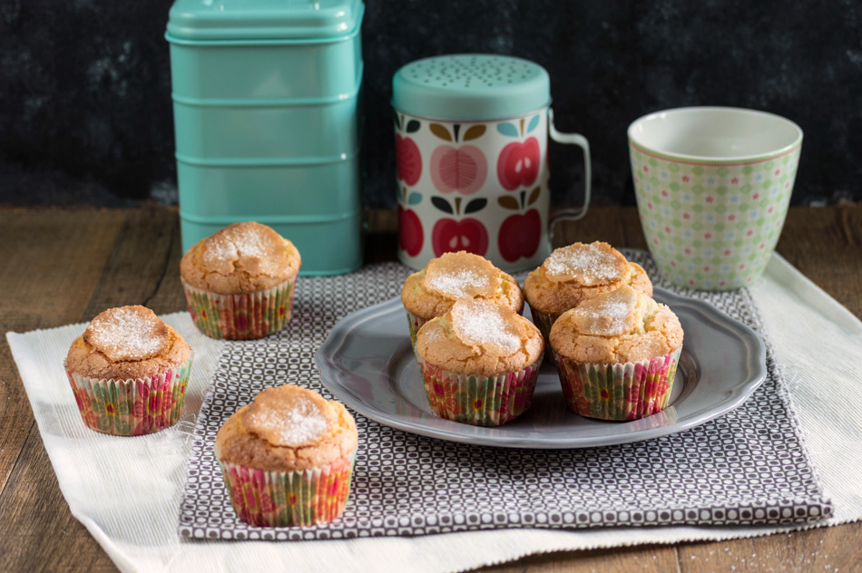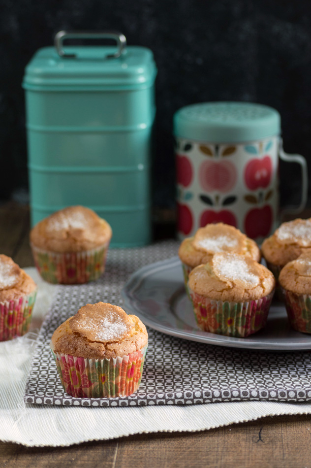 - Sacamos de la nevera y espolvoreamos un poco de azúcar por encima de cada magdalena.