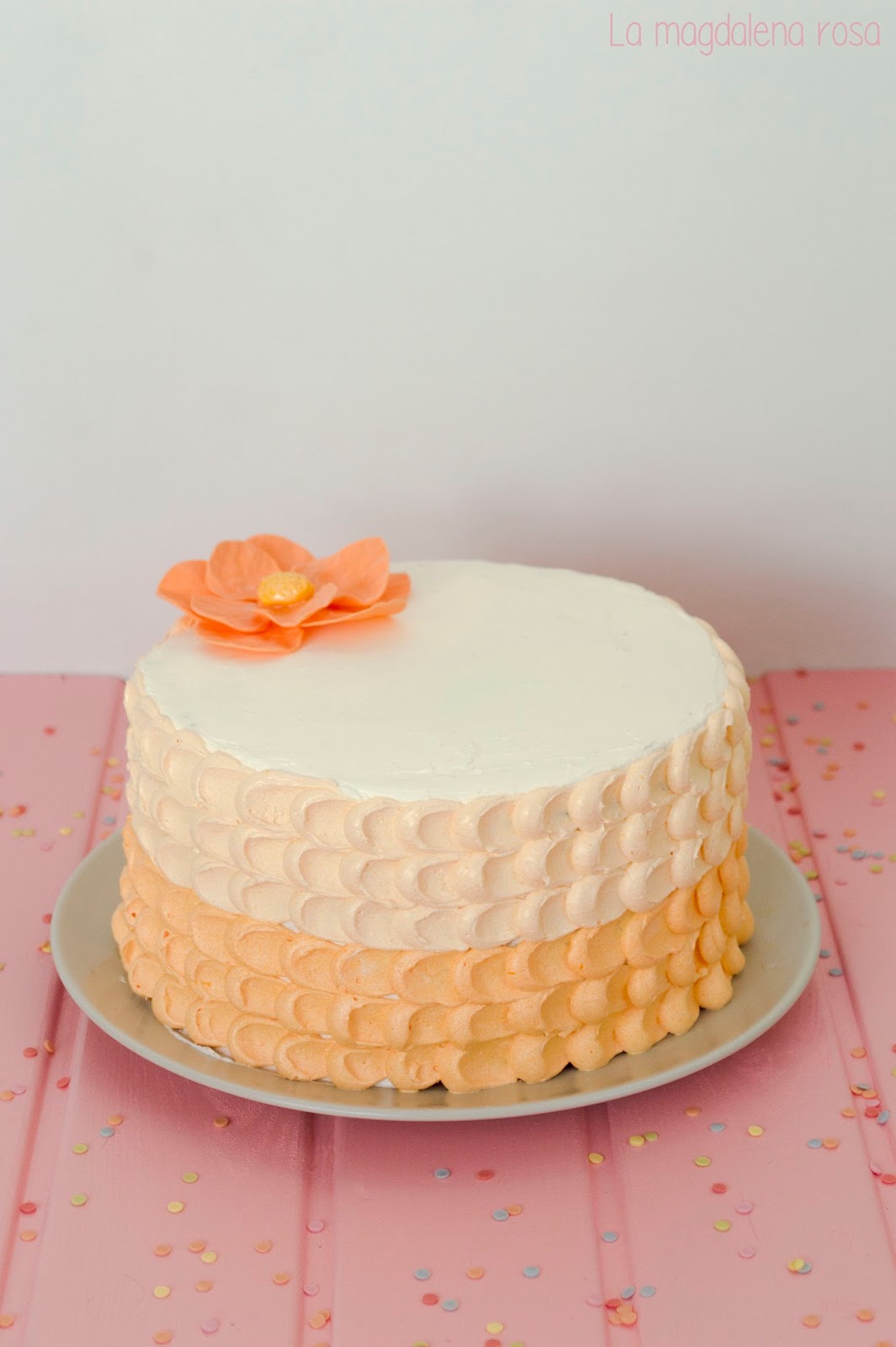 - Yo opté por hacer un degradado tiñendo una parte del buttercream con un poco de naranja y otro poco de buttercream con un poco más de colorante.